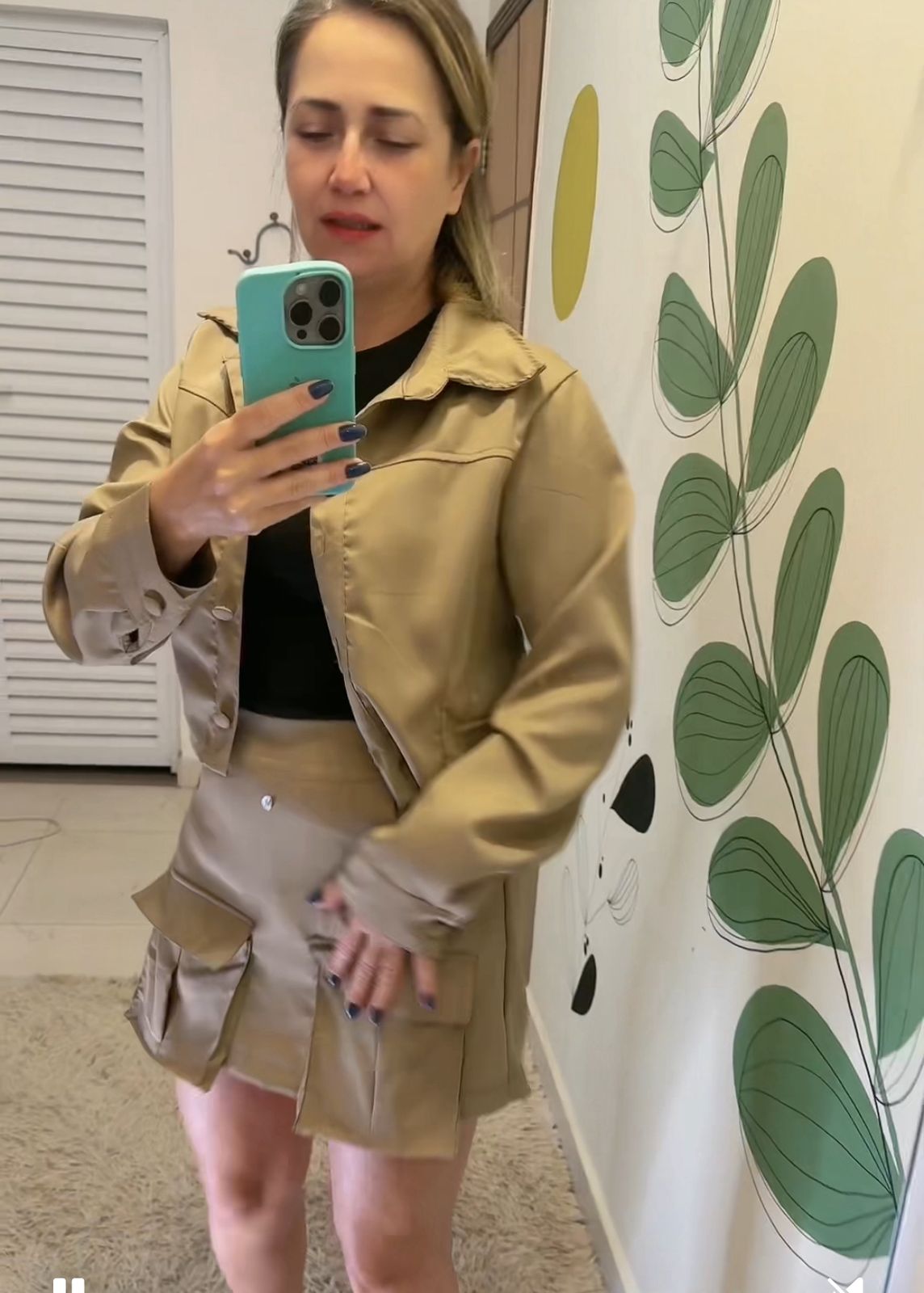 Blusa :Botões frontais e nos punhos, forrados e funcionais, podendo usar como casaquinho